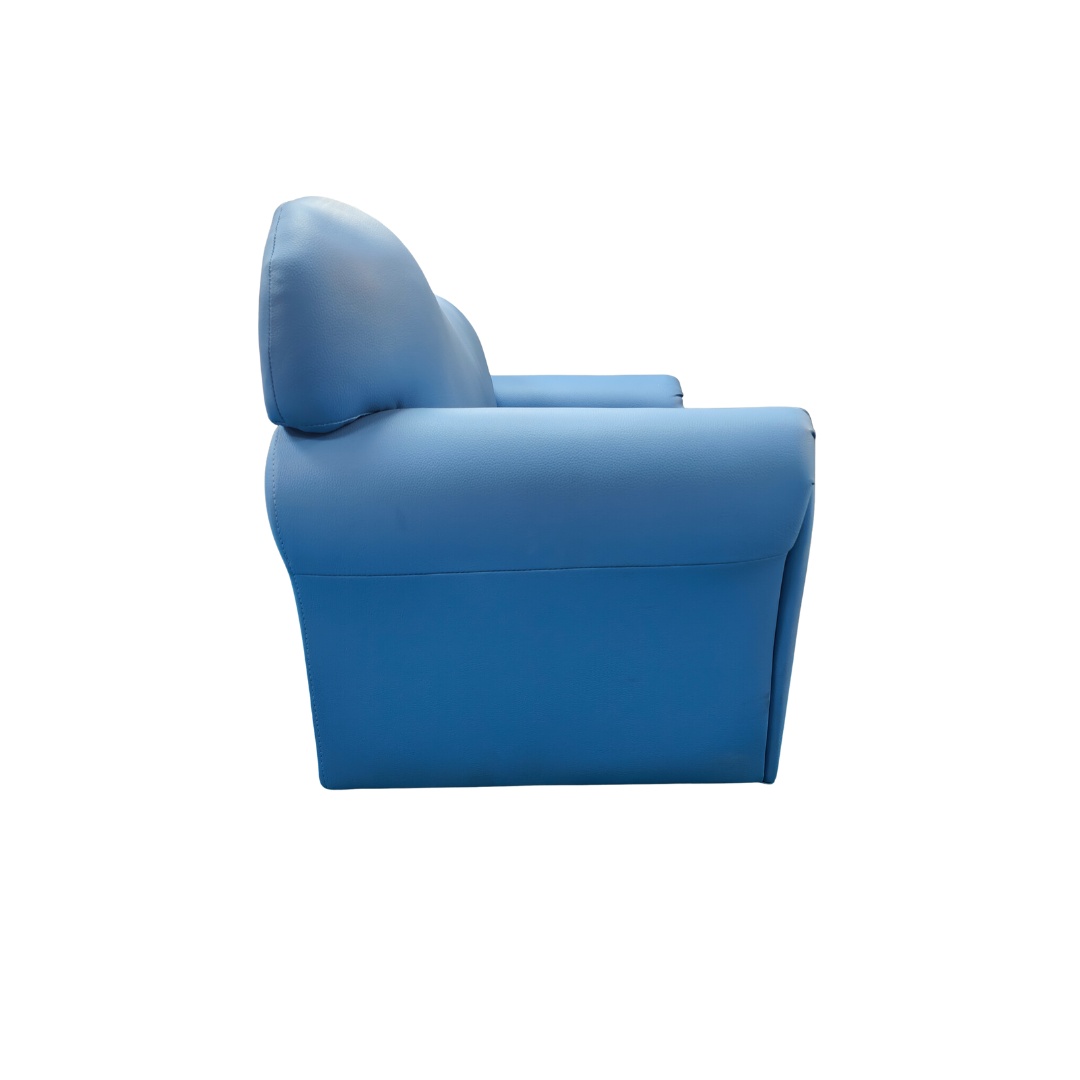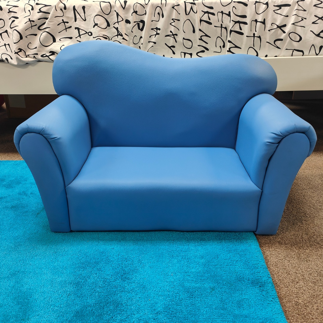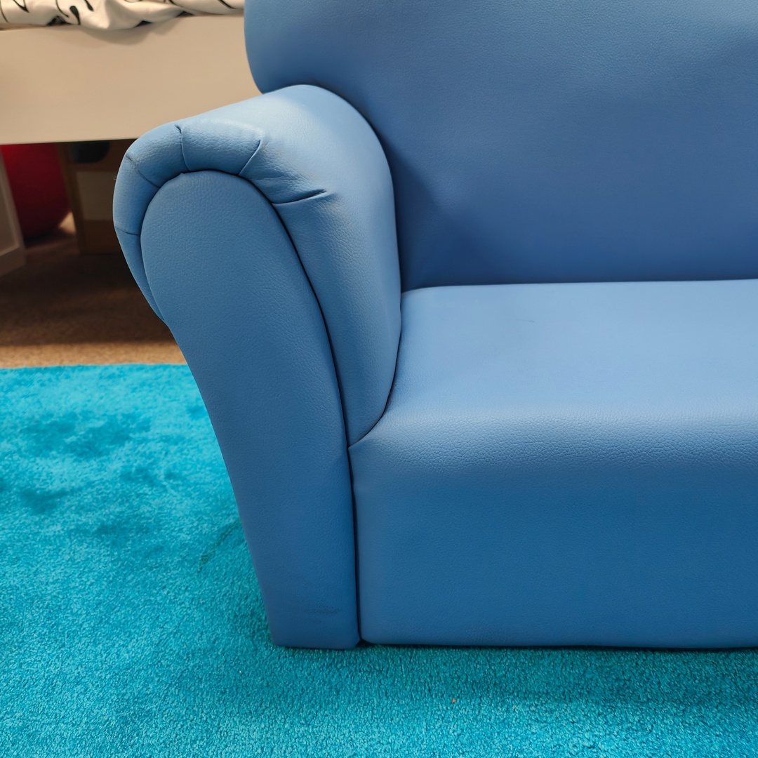 The 2-seater couch in a beautiful blue hue is a stunning addition to any living space. Its design combines comfort, style, and functionality to create the perfect seating option for relaxation and reading a book for your children.