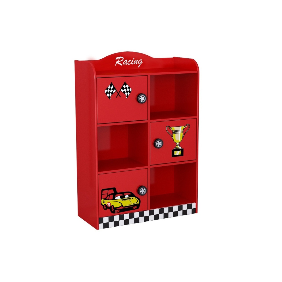 The Racing Car Cabinet with 3 Doors is a vibrant red cabinet that resembles a sleek racing car. With realistic decals and racing stripes, it adds a touch of speed and excitement to any space. The cabinet features three doors and ample storage space, making it perfect for organising books, toys, or personal belongings. Its sturdy construction and safety-conscious design ensure durability and peace of mind.