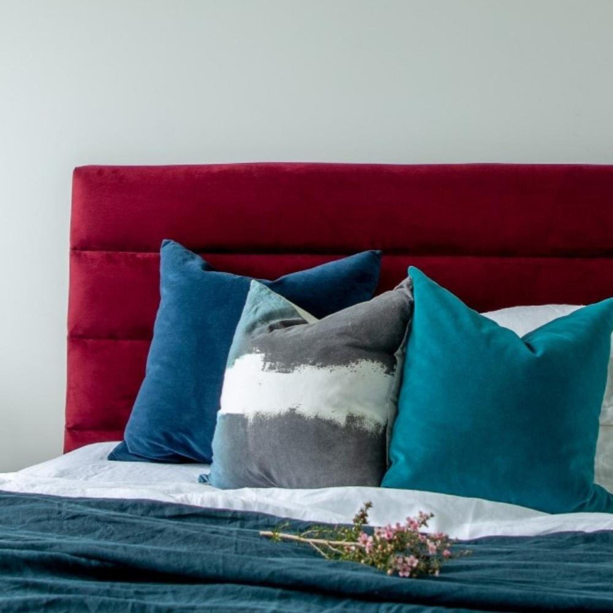 Style Description: The Dublin headboard has a three-horizontal roll design that is handcrafted in New Zealand and upholstered in hard-wearing commercial-grade fabric.
