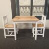 The Cubby Table and 2 Chairs set includes a table and two matching chairs, carefully crafted in pine with white painted accents.