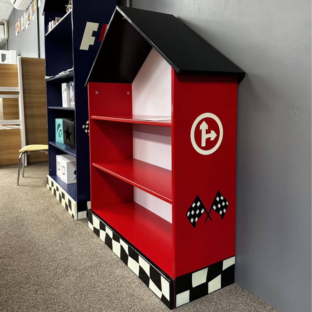 Add a touch of excitement to your child’s room with the Racing Car Bookcase. This vibrant red storage solution features racing car-themed graphics and ample storage space for books and belongings. Its child-friendly design and sturdy construction makes it a practical and visually appealing addition to any playroom or bedroom.