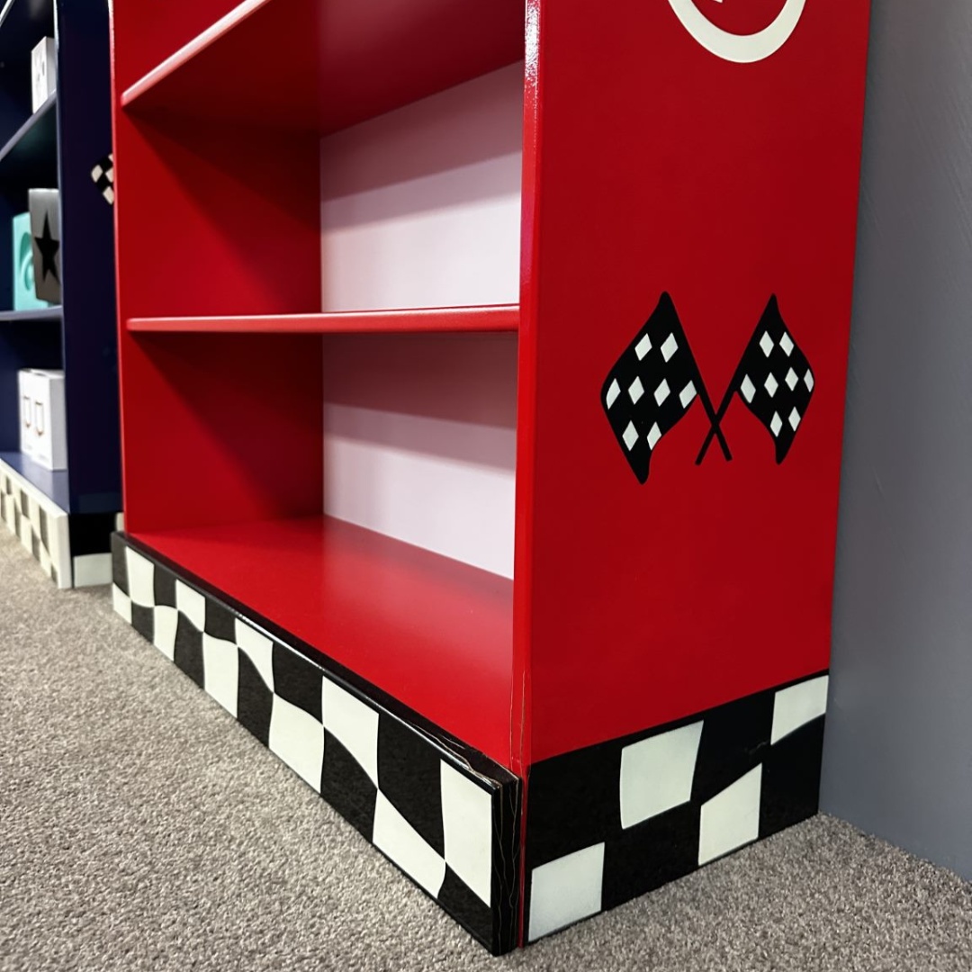 The Racing Car Bookshelf with 3 shelves is a vibrant high gloss red colour! This bookcase is the perfect addition to any child who is a car enthusiast, adding a touch of speed and excitement to their bedroom.